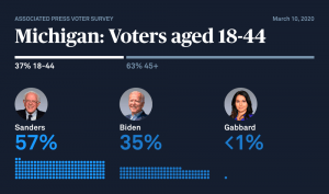 Despite losing the state, Bernie maintained advantages in youth support throughout every vote/caucus of the 2020 Democratic Primary. (from AP)