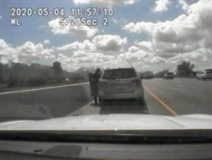 Dashcam snapshot of Officer Rick Morgan pulling over the boy on the highway